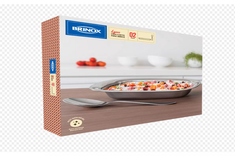 O arroz, um dos pratos mais simples e adorados da culinária brasileira, ganha elegância quando vai à mesa neste conjunto de duas peças da linha Lyon. O kit é composto por uma colher e uma travessa retangular, ambos desenhados especialmente para servir este grão. Os produtos da linha Lyon são feitos em aço inoxidável, o que lhes garante resistência e durabilidade, e podem ir à máquina de lavar louça sem problemas. A colher para arroz mede 25cm e a travessa retangular tem 30x20x6,2cm de dimensão.