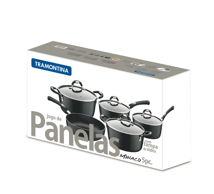 JOGO DE PANELAS ALUMÍNIO COM REVESTIMENTO INTERNO ANTIADERENTE 5 PEÇAS PRETA MÔNACO - TRAMONTINA