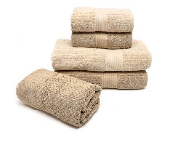 JOGO DE TOALHAS DE BANHO 5 PECAS FIO PENTEADO CANELADO 70/140 BEGE - BUDDEMEYAR