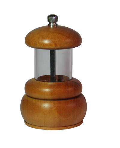 MOEDOR DE SAL PEQUENO COM VISOR ACRÍLICO E ACABAMENTO EM MADEIRA - PEPPERMILL