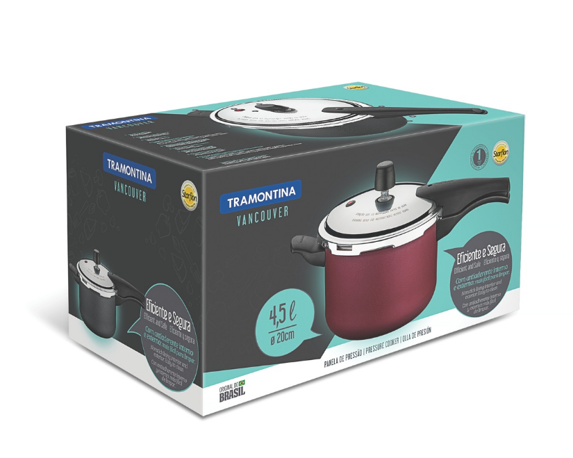 PANELA DE PRESSÃO DE ALUMÍNIO COM REVESTIMENTO INTERNO ANTIADERENTE 4,5L Ø 20 CM VANCOUVER - TRAMONTINA